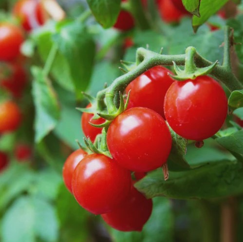 Our Small Red Cherry Tomatoes are the perfect bite-sized classic , bursting with juicy sweetness and bright acidity . Grown hydroponically at Tiny Town Farms without pesticides or soil, these